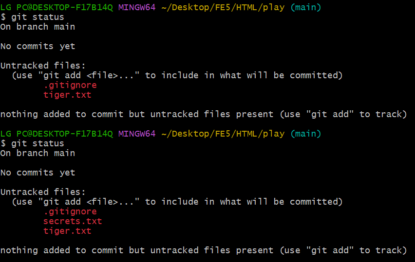 만들어 둔 폴더와 파일들 // play에 .gitignore 파일을 만든 것을 볼 수 있다.