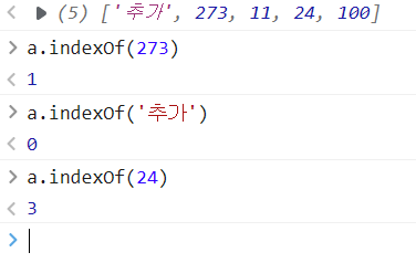 4. indexOf(요소) : 배열 내부에서 값의 위치 찾기